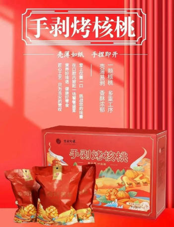 爱吃核桃却怕剥壳麻烦?古村印象手剥烤核桃来解决!壳薄如纸,轻轻一捏就能打开,内里的核桃仁经过精心烤制,香气更加浓郁,口感香脆可口,多重工序打造,让你轻松享受核桃的营养与美味,追剧、办公来上几颗,惬意又满足。