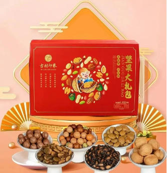 礼包内集结了多种精选坚果:夏威夷果:外壳易开,果仁奶香浓郁,一口咬下满是酥脆;多味花生:裹衣酥脆,花生粒饱满,咸香入味;杏仁:口感香脆,营养丰富,是休闲解馋的佳品;南瓜子:颗粒饱满,咸香适中,越嗑越上头;西瓜子:黑亮饱满,味道醇厚,是聚会闲聊的好搭档;核桃:果肉饱满,香脆可口,营养与美味兼具。古村印象坚果大礼包,精选优质坚果,严格把控品质,每一颗都饱满酥脆。无论是送给长辈,表达孝心;送给朋友,传递情谊;还是留给自己,享受团圆时刻的美味,都是绝佳选择。